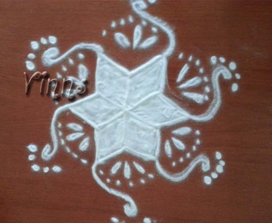 I did some small Alpona style kolams on my dining table. I tried to imitate the filling of elements as done in alpana type rangolis. The first display an inspiration from my friend’s work. The second and third an usual flower with some extensions around. Hope they get into Alpona category 🙂