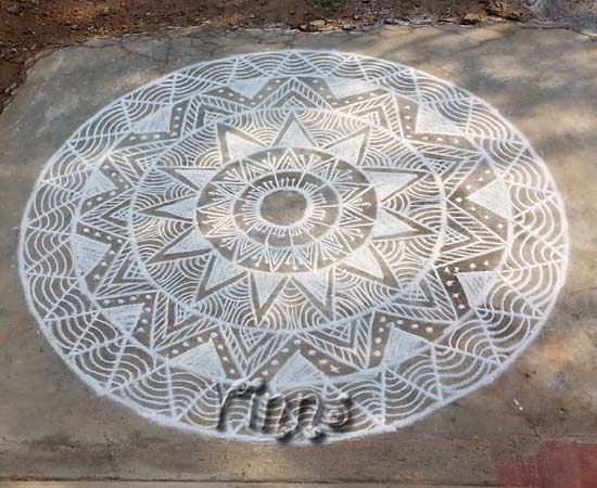 Freehand Kolam Circles and Triangles By adminvinns - June 18, 2014 0 2103 Share on Facebook Tweet on Twitter Sun :-) I wanted to draw a freehand kolam and wasn’t prepared with the design. Took a minute to start and went on replicating circles and triangles in each layer. Hope they are symmetry factor is highlighted ๐ Sun ๐