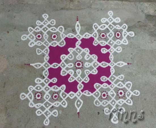 To start an account for this margazhi season, I have drawn a sikku kolam with wet rice paste and added color.