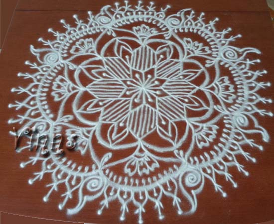 Small Freehand kolam with a flower as the base design. As usual after the base design got struck and some how managed to move on with some common extensions which are prominently seen in my previous kolams π