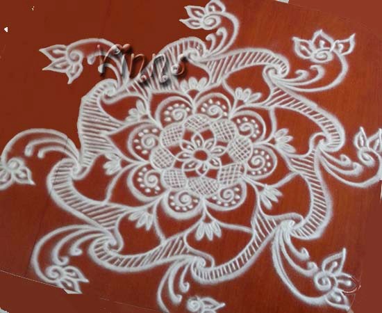 Freehand Kolam Freehand kolam with Paiselys By adminvinns - April 9, 2014 0 2732 Share on Facebook Tweet on Twitter Paiselys A freehand kolam with flower in the centre and bordered by paisleys. Paiselys
