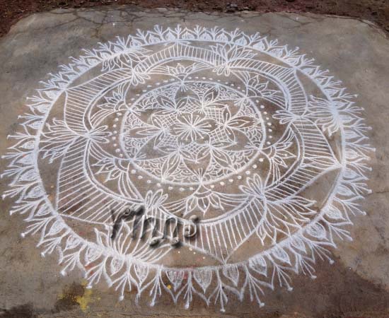 Freehand Kolam Freehand Rangoli-5 By adminvinns - June 21, 2014 0 2286 Share on Facebook Tweet on Twitter Rangoli A freehand kolam in circular pattern. Rangoli