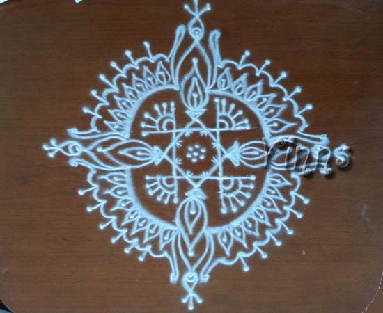 Freehand Kolam Freehand Rangoli Kolam By adminvinns - March 26, 2014 0 3234 Share on Facebook Tweet on Twitter Rangoli A rangoli type freehand kolam done with kolapodi. Rangoli