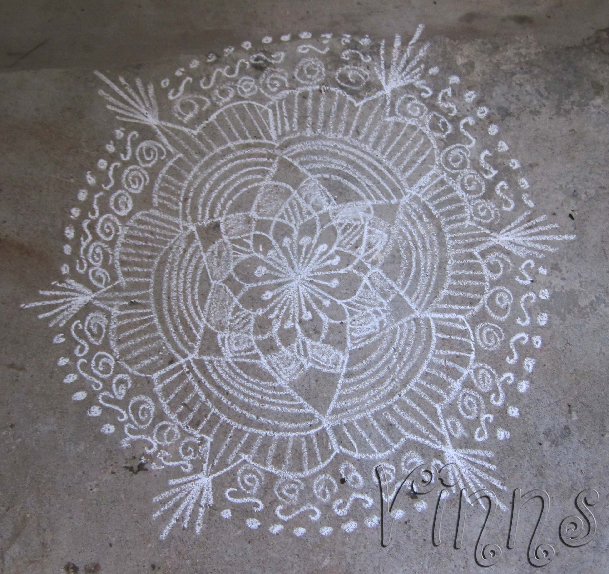 Freehand Kolam Freehand/Rangoli By adminvinns - November 14, 2013 0 1948 Share on Facebook Tweet on Twitter Rangoli in White :-) A simple freestyle kolam with lots of shading work, which veils the basic design π Causally done kolam without any preparations π Rangoli in White π