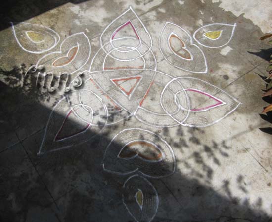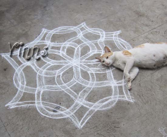 No one appreciated my kolam except the cute little cat who liked a lot (I guess so :-)) never left the place and dozed off later π