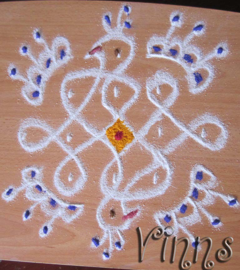 I have tried to to dress up the sikku kolam with some frills around it and looked like a peacock to my eyes??.