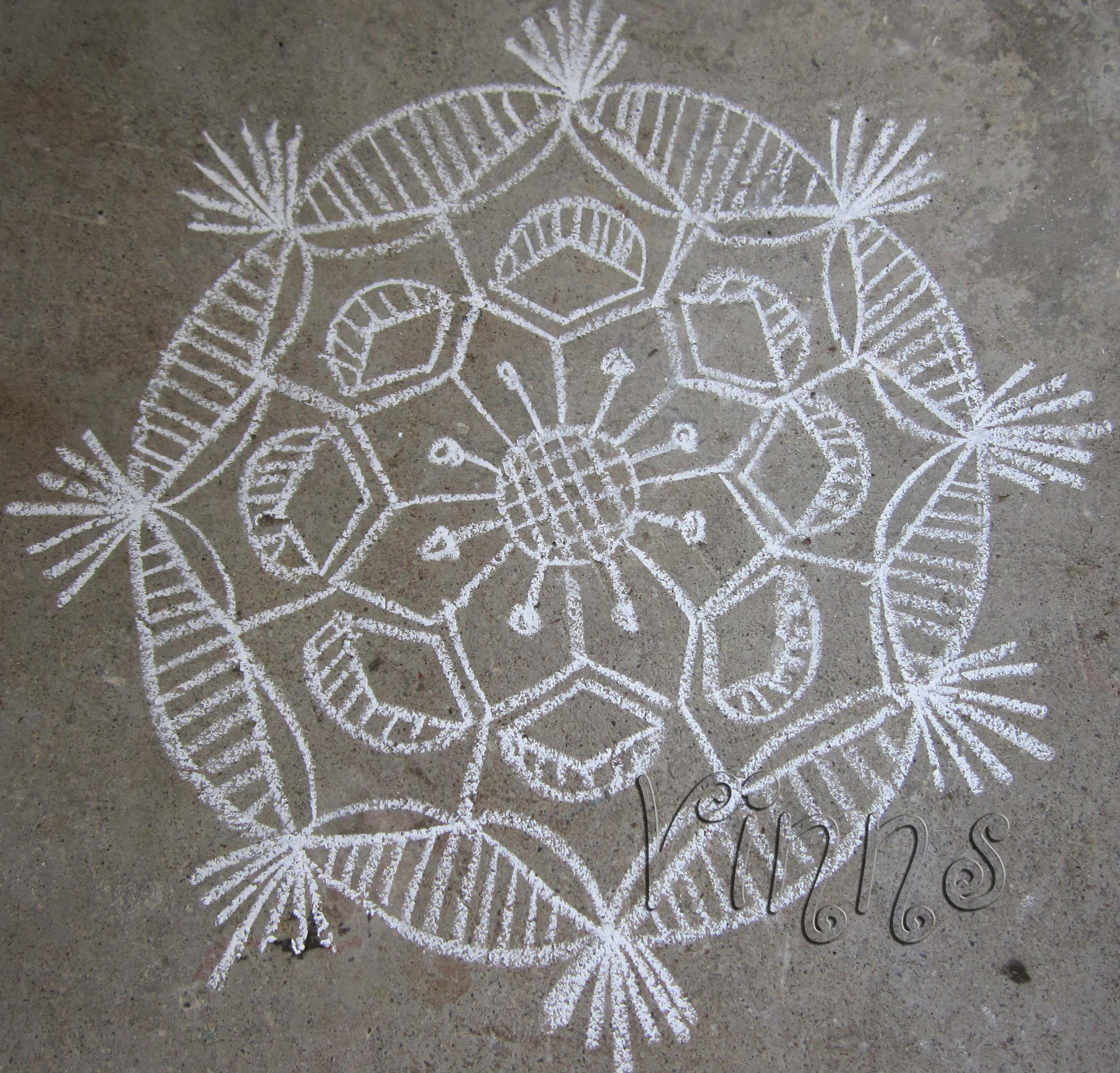 A freehand kolam done at the spur of the moment ๐ I think I can add a separate heading to categorise kolams created at the spot, as I don’t pre plan for rangoli type kolams. While drawing SOM kolams, my memory utilises its maximum power to recollect the designs which I have viewed earlier to form into a new amalgamated version ๐