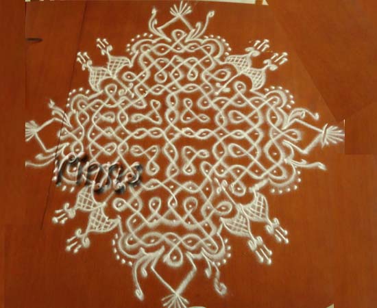 Dot KolamSikku kolam Sikku Kolam – 44 By adminvinns - January 10, 2014 0 2104 Share on Facebook Tweet on Twitter Sikku kolam Nothing special about this kolam, except done in a hurry. Dot count : 15-13×2-9×2-5×2-1 Sikku kolam