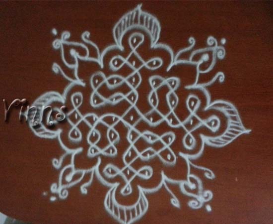 Dot KolamSikku kolam Sikku Kolam-51 By adminvinns - January 24, 2014 0 4580 Share on Facebook Tweet on Twitter Sikku Kolam A simple sikku kolam with 9-1 straight dots count. Sikku Kolam
