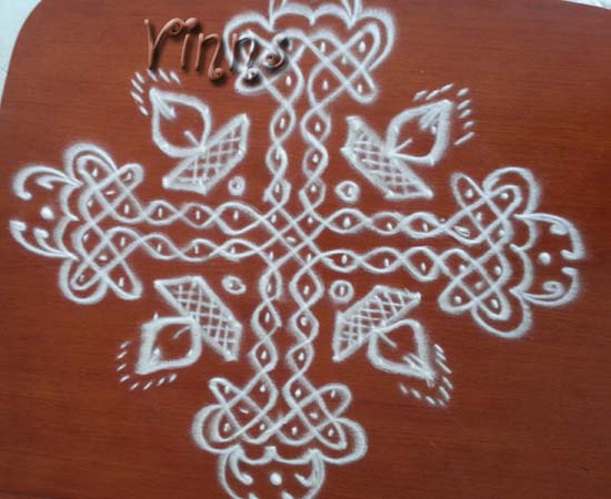 Dot KolamSikku kolam Sikku Kolam – 53 By adminvinns - January 29, 2014 0 2653 Share on Facebook Tweet on Twitter Sikku Kolam A sikku kolam with lamps. Dot count : 12×4-8×2-4×2 Sikku Kolam