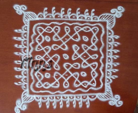 Dot KolamSikku kolam Sikku Kolam -64 By adminvinns - April 4, 2014 0 2190 Share on Facebook Tweet on Twitter Small Sikku kolam A small sikku kolam with 7×7 dots and with some extensions for enhancement Small Sikku kolam