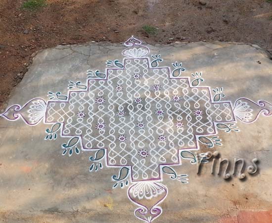 Dot KolamSikku kolam Sikku Kolam – 71 By adminvinns - June 19, 2014 0 2219 Share on Facebook Tweet on Twitter Sikku kolam A sikku kolam with 19×3-3 dot count and added some designs on the outer. Sikku kolam