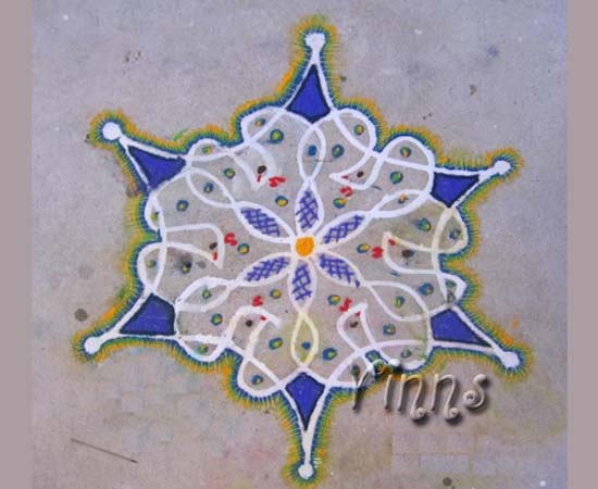 Dot KolamSikku kolam Sikku kolam – 85 By adminvinns - November 9, 2014 0 3377 Share on Facebook Tweet on Twitter Peacocks A small sikku kolam with 7-4 dots placed in interlaced pattern. A simple kolam which I have modified to my taste with colours. Hope it looks good 🙂 Peacocks