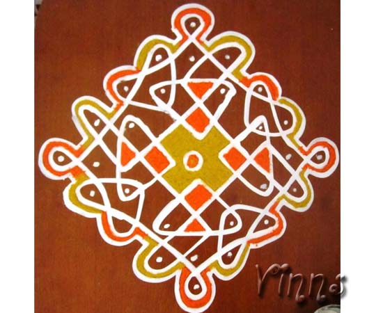 Dot KolamSikku kolam Sikku Kolam – 86 By adminvinns - November 9, 2014 0 2867 Share on Facebook Tweet on Twitter Sikku kolam A small sikku kolam with 9-1 straight dot pattern. I have added extra elements to give a different look to the kolam. Sikku kolam Version Two