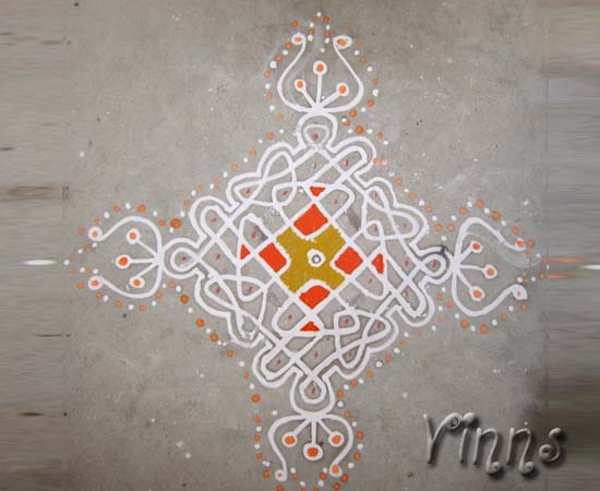 Dot KolamSikku kolam Sikku Kolam – 86 By adminvinns - November 9, 2014 0 2878 Share on Facebook Tweet on Twitter Sikku kolam A small sikku kolam with 9-1 straight dot pattern. I have added extra elements to give a different look to the kolam. Sikku kolam Version Two