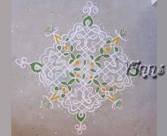 Dot KolamSikku kolam Sikku Kolam – 91 By adminvinns - December 2, 2014 0 2496 Share on Facebook Tweet on Twitter Sikku kolam I tried this design by clubbing four six dots chikku kolam and filling the space in between with my touch. I have used wet rice paste for drawing this kolam. Dot count : 15-1, dots placed in straight pattern. Sikku kolam