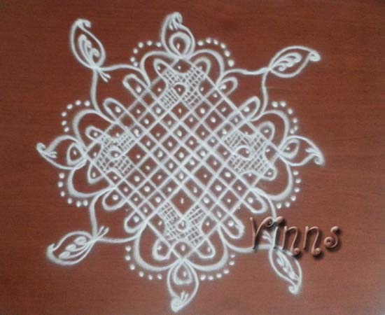 Dot KolamSikku kolam Sikku Kolamm -67 By adminvinns - May 13, 2014 0 3443 Share on Facebook Tweet on Twitter Simple :-) A small sikku kolam with 11-1 dots and tried to enhance with paisleys.. Hope it looks good 🙂 Simple 🙂