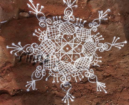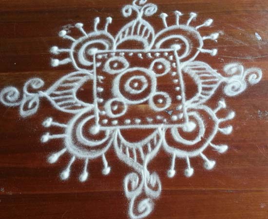 Freehand Kolam Small Freehand Kolam Collection-1 By adminvinns - December 30, 2013 0 7392 Share on Facebook Tweet on Twitter Square Kolam A collection of small kolams which I did on different days. A square based kolam with circles and swirls. Square Kolam A very simple freehand flower kolam with minimum extensions added Flower Kolam A star design with lots of detailing work done on mud floor. Star Kolam