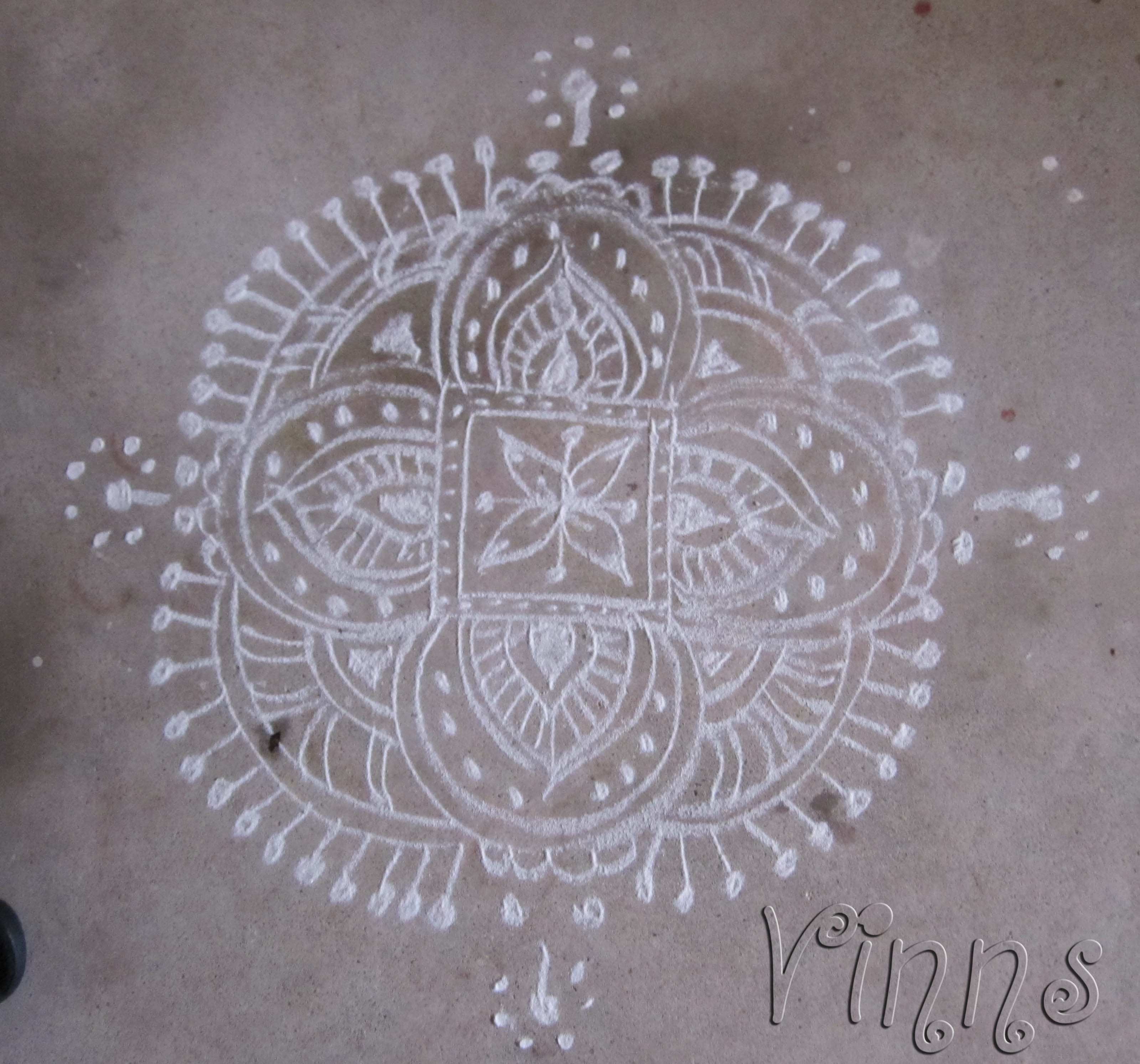 I wanted some designs to turn into the best ones but fail to hit the final line. So this goes into that category 🙂 .I did some homework before executing this freehand kolam. I was confident enough to try on floor. While executing, I don’t know what went wrong (hope that was the phone call, need to blame on something 😉 ) If time permits, I should give another try.. Hopefully soon 🙂